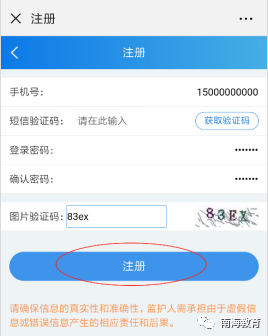 点击“没有账号?先去注册”按钮,打开注册页面。输入手机号后点击“获取短信验证码”按钮,将手机接收到的6位验证码填入短信码中,设置密码,再输入图片验证码后点击“注册”按钮,即可完成注册,如下图所示。